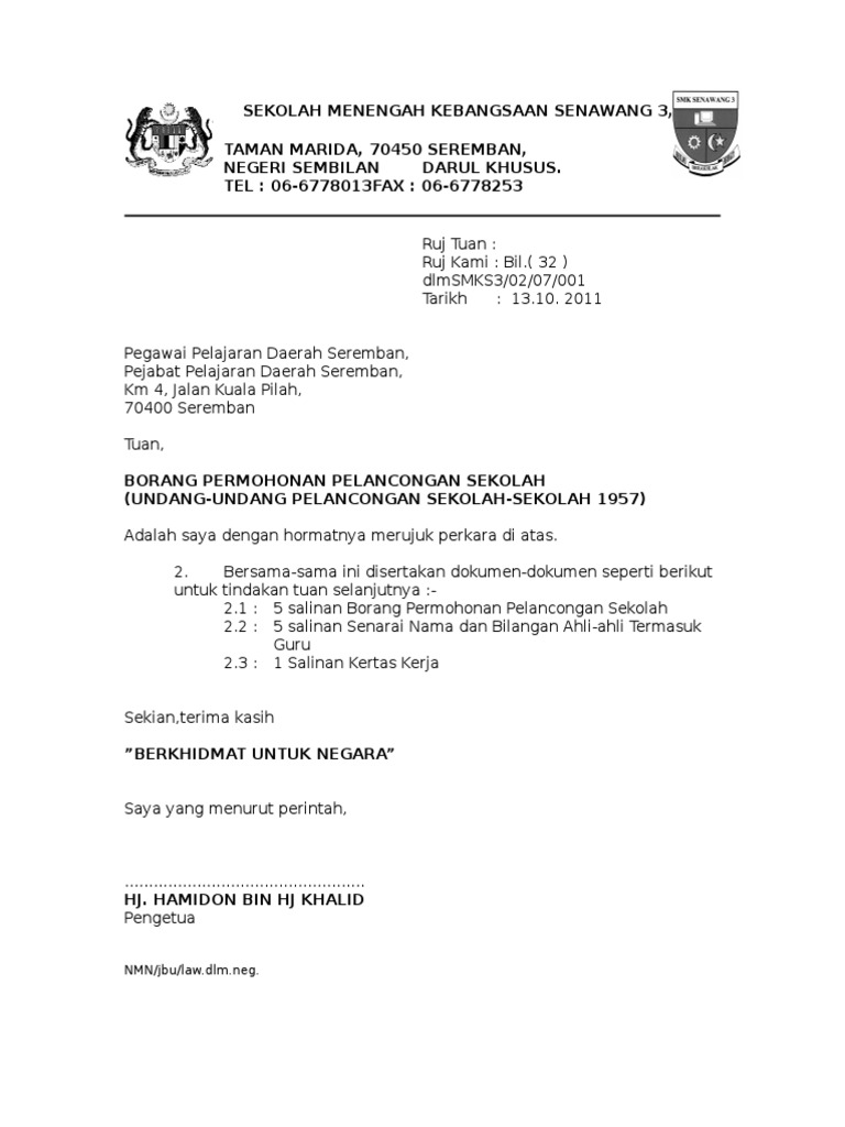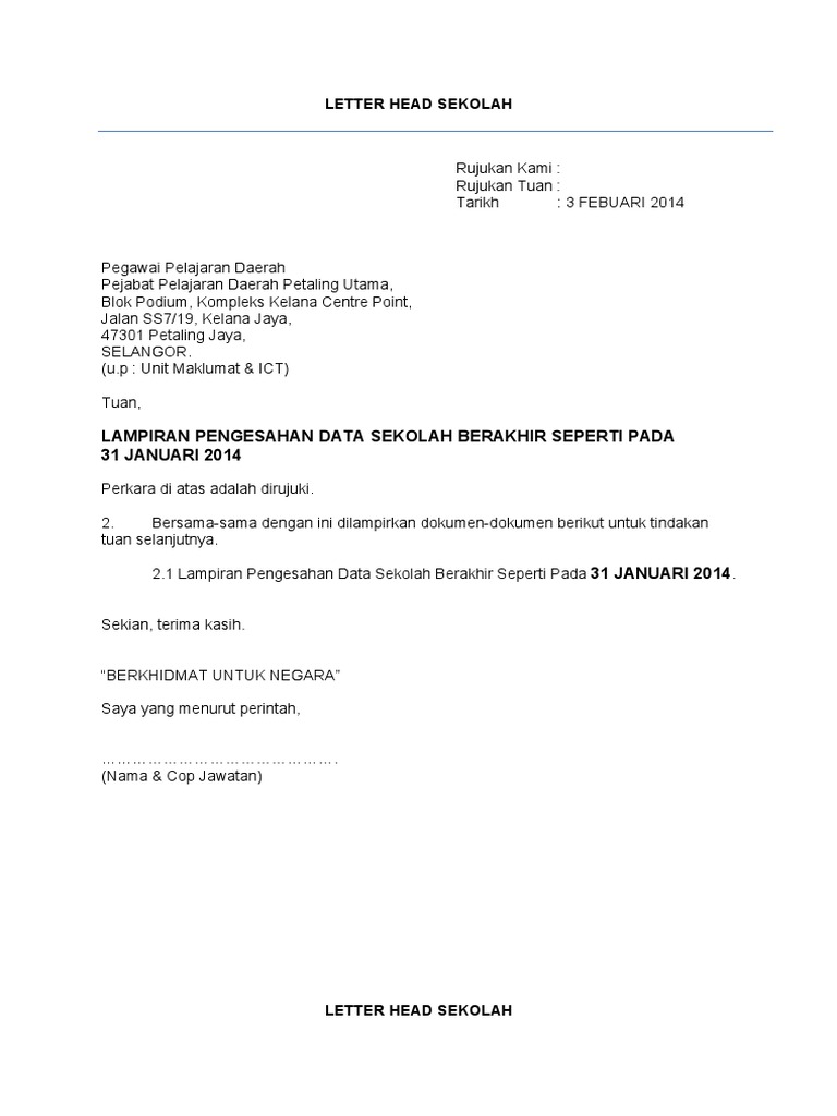 Contoh Surat Iringan Sekolah Latest Letter Website